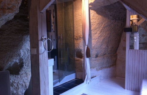 This independant troglodyte loft is located in a small wine maker village next to the city of Vendome. The loft has a view of the terrace where guests can relax and have their breakfast. The loft has a double bed downstairs and a folding bed upstairs. The large shower dug in the rock is located upstairs. The whole space is decorated with original art work and fitted with a refrigerator, coffee maker, TV. There is a small sitting area downstairs. Wifi is available free of charge. A continental breakfast is included. Thoré la Rochette is located about 40 minutes from Amboise where stands the Clos Lucé, last home of Leonardo da Vinci.