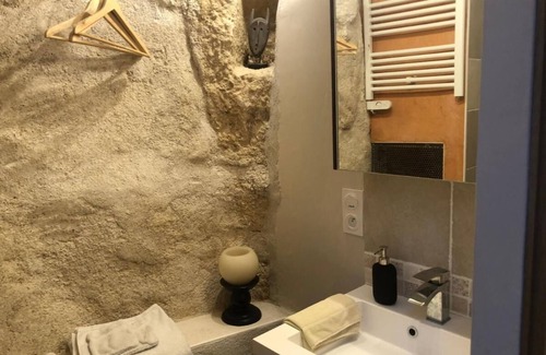 TROGLODYTE LOFT 2 is situated in Thoré-la-Rochette, a wine maker village and offers a private entrance, with a dedicated suspended terrasse/garden where you can have your breakfast and relax. This loft apartment features 1 bedroom fitted with a shower a full equiped kitchen with a dishwasher and a microwave, a flat-screen TV, a seating area next to an old bread -oven fitted with an ehtanol burner.