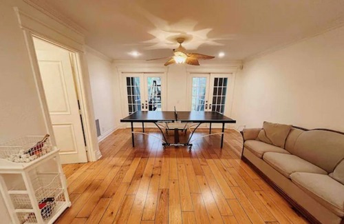 The property is five acres and you will have access to approximately three. The guest house can host up to 10 extra guest. IN ORDER TO BOOK BOTH HOMES PLEASE MARK 17 GUEST, even if you have more put down 17 for the proper quote, just let us know how many extra there are in a message. We allow 16 in the main house and 10 in the guest house. Note, they are two separate homes on the same property, they do not have shared spaces other than the driveway which is large and splits off. The pool is usable by the main house only, We are getting hot tubs for both homes so each can have their own. By adding the extra guest you will be charged an additional $300 a night for the rental of the guest house, please still send us a message with the number of guest so that we may prepare accordingly. This property would be perfect for any family reunions, weddings or any other family gathering. Reach out to us if this is something you are interested in and we will do our best to accommodate based on availability. On property there is a warehouse located in the very back utilized for my business however due to the large size of the property you won’t notice or disrupt your stay. We just use the driveway to get back there. We have a hedge of trees and I just planted a new hedge of Clusia that’s 5 feet right now but growing.