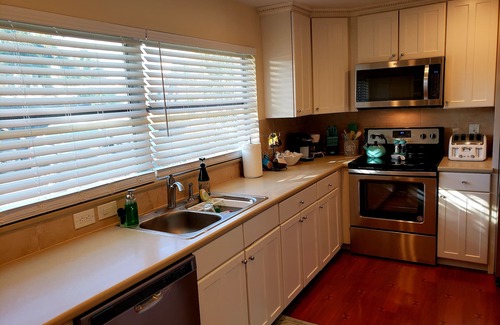 This is an "entire-house" listing, that is a fully private attached-home. Your friendly (yet private) neighbor lives between England and next-door...if they are in town, you may only see them in the driveway (if at all). The left side of the driveway is for their use, where the right side is all yours!