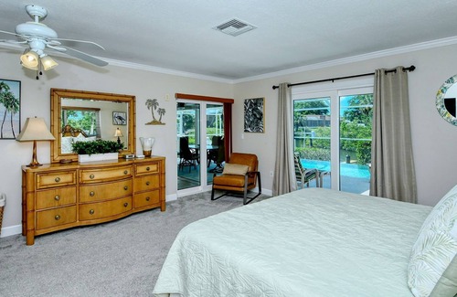 Outstanding water front views! Tall swaying palms. Heated hot tub/Infinity Pool. Fish, explore the canals, and intercoastal right from your back yard. At end of cul-de-sac this Sorento Shores home is the perfect get away! Use the kayaks, paddleboard, and bicycles. 3 mi to Nokomis beach, 5 mi to Venice Jetty, 10 mi to Siesta Key.