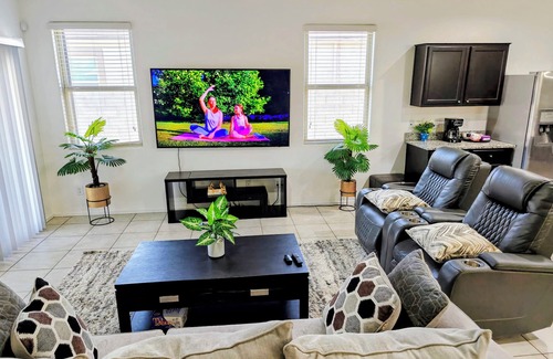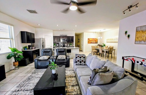 New built! Family friendly with spacious rooms and upgraded appliances. Grill and Tiki bar in the backyard with mountain view perfect for night stargazing. A buzzing restaurant district, casino, bowling/arcade and recreational center within a 5 mile radius.