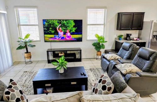 Providing a garden, Tropical Desert Oasis Phoenix features accommodations in Maricopa. This property offers access to a terrace, free private parking, and free Wifi. Guests can have a drink at the bar. Opening onto a patio, the vacation home consists of 5 bedrooms. The air-conditioned vacation home also provides a flat-screen TV, a fully equipped kitchen with a dishwasher, a seating area, washing machine, and 3 bathrooms with a bath and a shower. The property has an outdoor dining area. Sea Life Arizona is 27 miles from the vacation home. Phoenix Sky Harbor International Airport is 34 miles away.