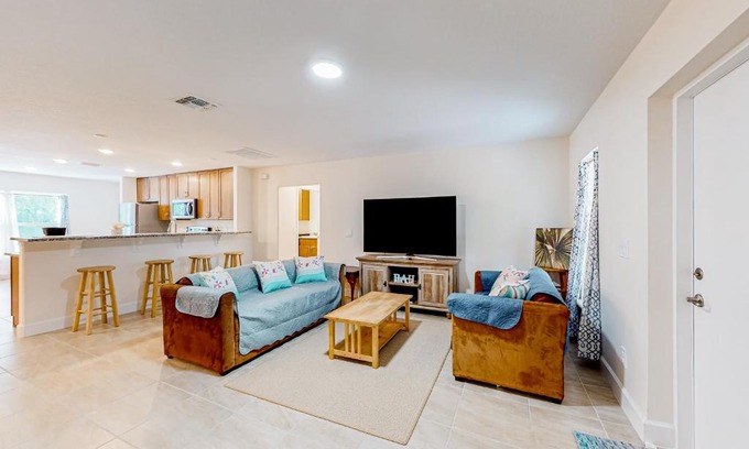 Tropical Haven Retreat is located in Palm Bay, just 11 miles from Sea Turtle Preservation Society Melbourne Beach and 12 miles from Brevard Museum of Art and Science. The vacation home has access to a restaurant. Andretti Thrill Park is 5.5 miles away and Andy Semnick-Les Hall Baseball Field is 6.9 miles from the vacation home. With direct access to a patio, the vacation home consists of 4 bedrooms. The air-conditioned vacation home also offers a flat-screen TV, a fully equipped kitchen with a dishwasher, a seating area, washing machine, and 3 bathrooms with a walk-in shower. The property has an outdoor dining area. Guests at the vacation home will be able to enjoy activities in and around Palm Bay, like cycling. Liberty Bell Memorial Museum is 8.1 miles from Tropical Haven Retreat, while Melbourne Yacht Club Marina is 8.5 miles from the property. Melbourne International Airport is 9.3 miles away.