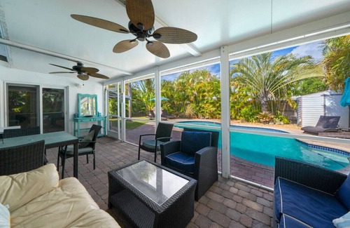 - Renovated 3BR/2BA with large heated saltwater pool & tiki bar