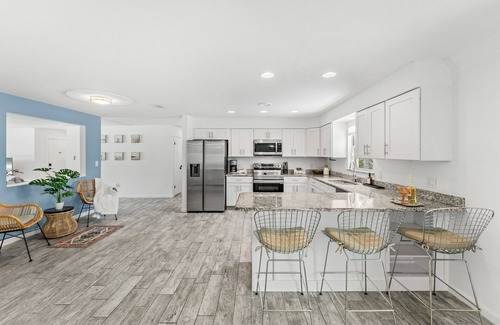 Inside, you'll find a fully stocked kitchen, spacious living room with smart TV, and sleeping arrangements for up to 8 guests. Located just minutes from the beach, the river, and Gleason Park, this home makes it easy to enjoy everything Indian Harbour Beach has to offer — from sunrise strolls to kayaking adventures.