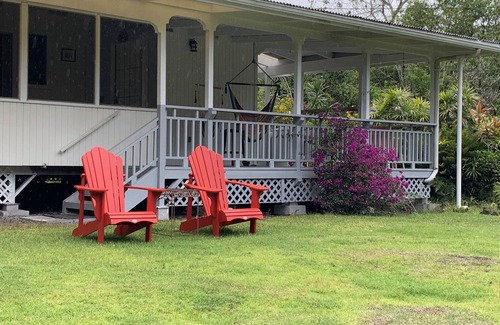 The jungalow is located 16 miles from Hilo airport, four miles makai (toward sea) of HWY 130, five miles to nearest mini-market or 8 miles to Pahoa, and 20 to Volcanos National Park. This is a quiet and secluded area but it is a jungle out there, so be prepared for wild fowl, coqui, gekkos, some insects and rain. The Jungalow is wide open for natural ventilation and trade winds (no air conditioner). Quiet hours are from dusk to dawn. Owners and 2 cats live on property in a separate unit at the back of the property. Two cars maximum. Ring security camera facing driveway.. 🤙
