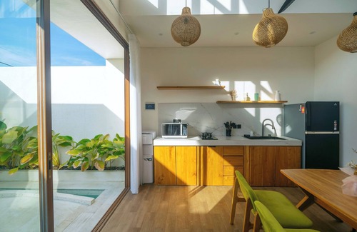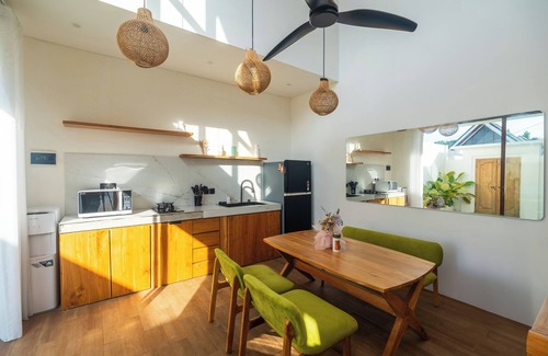 Escape to this beautiful villa in picturesque Kerobokan neighborhood. This serene retreat features 2 cozy bedrooms with queen beds, perfect for a peaceful night's sleep. Enjoy the awesome amenities like a bathtub, shower, pool and AC for your comfort. Enclosed kitchen with living room area. Whether you're looking to relax or explore the city, this villa is the ideal home base for your getaway. We look forward to hosting you at our place.