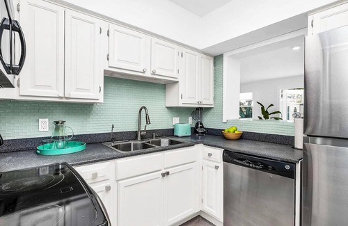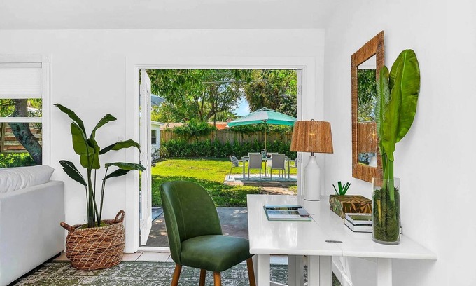 Welcome to your tranquil oasis just a few miles from the beach, Palm Beach International Airport, and downtown, ideal for a long stay! Unwind in this cozy house featuring stylish decor.