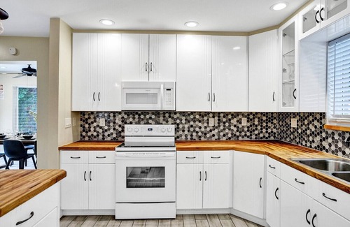Your stay includes access to a range of premium amenities that elevate your wedding experience. The stunning backyard features a heated pool, ideal for hosting pre-wedding festivities or relaxing after a day of celebrations. Inside, the villa offers four elegantly appointed bedrooms and two bathrooms, ensuring comfort for you and your guests. The open-concept living area allows for seamless entertaining, while the dining space provides the perfect setting for a rehearsal dinner or post-wedding brunch. Modern conveniences such as high-speed internet and a fully equipped kitchen add to the appeal, making it an excellent choice for a destination wedding.