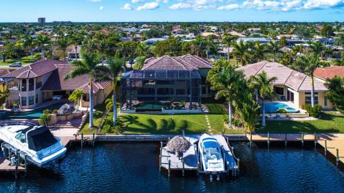 Tropical waterfront paradise with gulf access, heated infinity pool and spa - Villa Southern Shores offers accommodations in Cape Coral, 17 miles from Sanibel and Captiva Chamber of Commerce and Visitors Center and 19 miles from Sanibel Lighthouse. This villa features free private parking, free shuttle service, and free Wifi. During your stay at this villa, you can use an infinity pool, as well as a selection of a hot tub and private check-in and check-out. Offering direct access to a balcony with pool views, the spacious air-conditioned villa consists of 5 bedrooms. Featuring a terrace with lake views, this villa also comes with a flat-screen TV, a well-equipped kitchen with a dishwasher, an oven, and a microwave, as well as 4 bathrooms with a hot tub and a hair dryer. The property has an outdoor dining area. During warmer months, you can make use of the barbecue facilities and eat on the private patio. You can play tennis at the villa, and the area is popular for fishing. An indoor play area is also available at Tropical waterfront paradise with gulf access, heated infinity pool and spa - Villa Southern Shores, while guests can also relax in the garden. Bailey Matthews Shell Museum is 21 miles from the accommodation, while Silverspot Cinema is 30 miles from the property. Southwest Florida International Airport is 17 miles away.