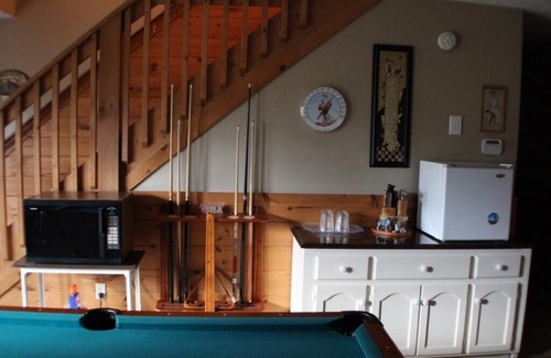 Your stay at the cabin includes a plethora of amenities designed for both comfort and celebration. This spacious 1,750 sq. ft. log cabin features three private bedroom/bath suites on separate levels, accommodating up to eight guests. You'll find a game room with a pool table, a cozy great room with a fireplace, and a well-equipped kitchen, perfect for hosting pre-wedding festivities. Additionally, a heated swimming pool and a clubhouse are available nearby for rental, providing an excellent venue for your wedding reception or private gatherings.