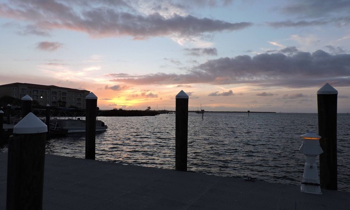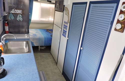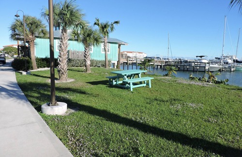 The houseboat "Dolphin" has 4 distinct areas for your enjoyment and has more space than you would think! Outside areas: there is a large upper deck with convertible outdoor furniture, a lower back deck with roll-out shade cover, (Wonderful place for morning coffee!) and a covered front deck on the bow. All have different furniture. Inside: There is 1 bedroom with a very comfortable queen bed, a salon with a dining table that can seat four people on two bench seats. There are 2 comfortable chairs, with arm rests and ratcheting backs that convert to lounge chairs, two single beds, or can be push together to make one double bed. (2 inch foam pads can be added for max comfort when made into beds). There are two roof mounted AC units, one in the bedroom, one in the salon. The one in the salon has heat if needed in the winter months. A smart Fire TV and Bluetooth speaker for your entertainment A full galley (kitchen) with a full size fridge/freezer (with Ice trays I have freshly filled for your arrival), two burner stove top, microwave, coffee maker and toaster. The galley is fully equipped with things like: pots, pans, dishes, cutlery, knives, bottle openers, scissors, cups, wine tumblers, spices, condiments, and more. I supply you with a full package of coffee, sugar, powdered creamer and two bottles of water per person, per stay. (More info about extras below!) There is 1 bathroom with large shower on the boat. There is limited toilet use on the boat due to typical state laws/marina life. You can only go #1 on the boat and you will need to learn the proper way to flush so the sanitation system treats all flushes properly, it is easy and full instructions on the boat. But no worries, it is a short walk, a couple hundred feet, up the dock to the main marina building for #2, you can NOT go #2 on the boat! (welcome to marina life! LOL) You may invite your local friends over to also enjoy the houseboat, because let's face it, it is cool and unique! Just remember, to let them know all safety rules and you are responsible for them, max 4 people overnight though, I am open to discussing the possibility of 5 people max in some circumstances. There is so much to do in the marina, including, but not limited to: The Wet Whistle Bar, food trucks, jet ski/boat rentals, fishing/boating charters, helicopter tours, tiki boat tours, kyack rentals and more! There is a bit of a learning curve to living/staying on a boat, most important is being steady on your feet, the boat rocks, moves up and down with the water/tides. Easy, detailed instructions are on the boat on how to turn on lights, use shower drain pump, flush toilet, etc, but it is all easy once you know how. I charge a very minimal cleaning fee because all guests have been neat and tidy when checking out. No worries if you don't want to be, just leave some cash for cleaning if you choose. I also keep lot's of extras onboard for guest use, such as: enough paper towels, TP, trash bags ect. for your whole stay. I also provide beach towels, beach chairs, a Frisbee, zip lock bags, shampoo/conditioner, lotion, soaps, basic first aid items, spices, condiments and other little thing's you don't have to worry about packing! Feel free to use what you need, but please be kind and not take what you don't use of the consumables. All linens, including bedspread and mattress pad, are cleaned/sanitized between every guest along with bath/kitchen towels and snuggle TV blanket. This is a true vacation destination/experience stay! Yes, you can fish off the boat and marina docks (State fishing license required) There are even underwater drop lights around the marina docks so you can watch the underwater life at night. There is an abundance of wildlife around the boat/marina including, many varieties of birds, fish and sometimes, mostly in winter months, you can even watch dolphins from the back of the boat in the mornings, as you can see from the pictures, they even sometimes come right up to the boat!