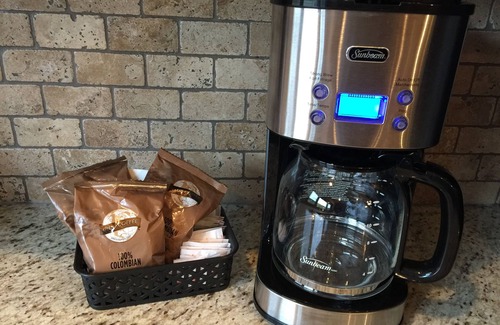 This condo has an amazing kitchen complete with granite countertops, stainless steel appliances in a well-thought-out design that is a joy to cook & entertain in while you watch the skiers going down the front face of the mountain. Appliances include a fridge (ice maker, and filtered water), ceramic flat top stove, microwave, dishwasher, clothes washer & dryer, coffee maker, teapot, blender, popcorn maker, slow cooker and waffle maker. The fully stocked kitchen includes place settings for 8-10, ample glassware, plastic cups, bakeware, and all utensils needed, even a turkey roaster! The kitchen table seats seven plus the eating bar includes three bar stools.