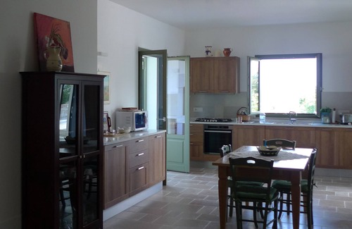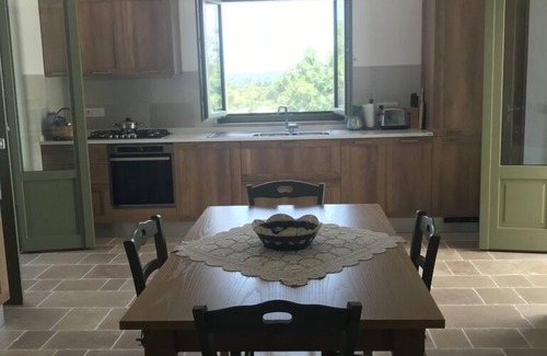 (Text automatically translated) Beautiful house with three trulli (with kitchen extension and patio) with one-hectare garden in the heart of the Itrian Valley. Large pool of 12x6m built in 2011. Superb terrace of 50 m2 with garden full of character with its vineyards, olive and fruit trees, with magnificent views of the valley d'Itria and many trulli houses. A haven of peace in the countryside. The property is 3 km from Martina Franca, charming Baroque city that offers visitors a multitude of cultural events and great restaurants. A few kilometers away is Alberobello, the trulli town classified by Unesco Locorotondo and its famous white wine , Ostuni, the white city and Cisternino. At 20 km the sea and choice, equipped beaches and its beautiful coves . With private parking for 4/5 cars protected via electric gate. Completely renovated in 2006, new bathroom in 2010, new pool built in 2011. The kitchen extension and trulli renovation completed in 2018. All doors and windows are brand new, with quality material and anti-mosquito nets. The price includes a welcome pack, bed linen and towels, electricity, water and gas. Additional linen can be provided on request. (30 eur per set). Weekly cleaning for longer stays, but can be arranged with the desired frequency. Cooking classes or a chef on premises or art classes available on demand. Location preferably from Saturday to Saturday, but flexible subject to availability.