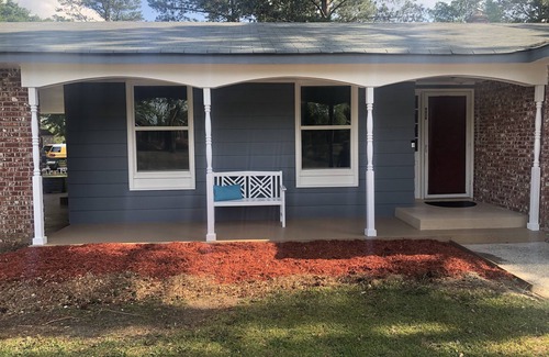 Newly listed and totally disinfected between guests. Enjoy the entire incredibly spotless and spacious 3 bedroom, 2 bathroom home with friends and family. Check yourself in with an electronic keypad. This totally remodeled home is nicely furnished, with hardwood floors, throughout the house. Features include modern furniture, queen size memory foam beds, 2 Roku TV's, Wi-Fi, dinnerware, cookware, utensils, Keurig coffee machine, it has a fully stocked kitchen for you to enjoy a meal with friends and family. Iron, Ironing board and hair dryers are also included, It is a quiet and peaceful neighborhood, close to the Airport, USC, William Brice Stadium, Ft. Jackson, Augusta and downtown Columbia. Where you will find the State House, USC Campus, museums, Congaree River, Riverbanks Zoo, Soda City farmers market, Planet Fitness Gym, Riverwalk (walking path), parks and restaurants, We are less than one hour to the Augusta Masters.mm