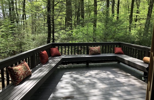 There are 2 main bedrooms, each with a queen-sized bed; the sleeping alcove houses a twin, and the Secret Playroom has a full-sized futon that will sleep 2 kids. Big family? The companion "Cozy Appalachian Trail Cottage" is just across the creek. Book the two!
