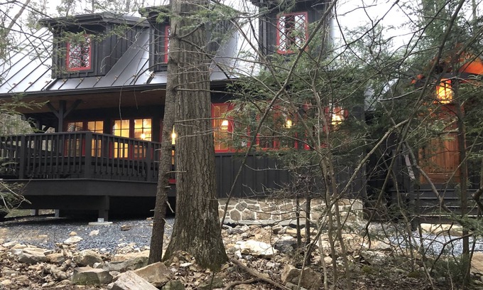 Those were the words of the first guest when she discovered this wondrous retreat, full of surprises for kids and grown-ups, just downhill from the Appalachian Trail. Go for a walk in the woods, go for a bike ride, splash in the creek, or just laze the day away in a fireside rocker with a good book. With two bedrooms, a clever sleeping alcove, and a futon in the Secret Playroom, the cabin sleeps six, seven if you banish snoring Uncle Arslan to the couch.