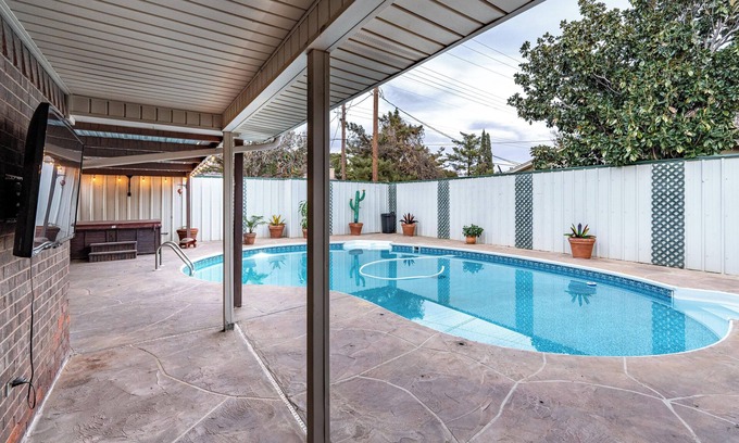 Escape to this peaceful house in Lubbock. Just 4 miles down Quaker Avenue to Texas Tech University and 4 miles to Lubbock Christian University on Loop 289. With 3 bedrooms including 1 king bed and 2 queen beds, this gorgeous property offers all the comforts of home. Enjoy the convenience of home with amenities like AC, Wi-Fi, washer/dryer, along with the pool and hot tub. Experience that peaceful, easy feeling of Lubbock at our house.