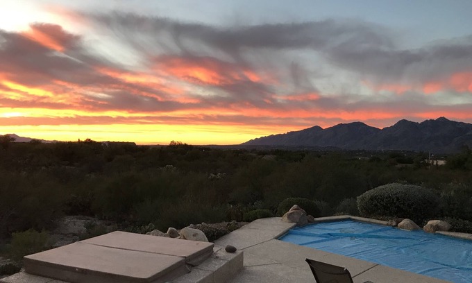 Welcome to our beautiful and unique family home on three private acres on the east side of Tucson. Gorgeous views of mountains and desert abound and sunsets always provide a wonderful evening show to enjoy from the spacious patio and pool area. An updated and open living/dining/kitchen space brings all the comforts of home.