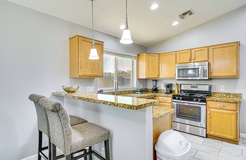Nestled in the heart of the Sonoran Desert, this 3-bedroom, 2-bath Tucson vacation rental features a full kitchen, a covered patio, and sweeping mountain views — ideal for anyone who wants to enjoy the beautiful scenery without forsaking the conveniences of home. Sip your morning coffee while the sun rises over the incredible peaks. Then, head to Catalina State Park or Old Tucson! When evening comes, grill out in the backyard and savor your meal at the inviting outdoor table.