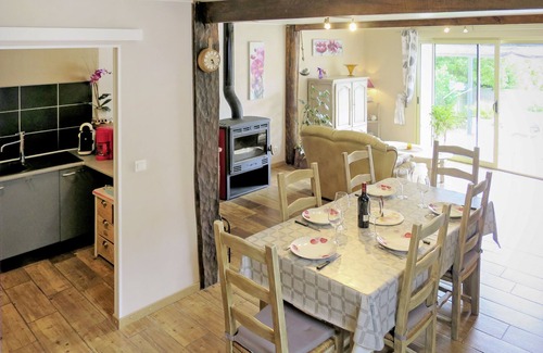"Tuilières", 4-room house 85 m2 on 2 levels. Bright, beautiful and cosy furnishings: large living/dining room with dining table and satellite TV (flat screen), wood-burning stove. Exit to the garden. 1 room with 1 french bed (160 cm, length 200 cm). Open kitchen (1 hot plate, oven, dishwasher, 3 gas rings, toaster, kettle, microwave, freezer, electric coffee machine) with bar. Shower, sep. WC. Upper floor: 1 open room with sloping ceilings with 1 french bed (140 cm, length 190 cm). 1 room with sloping ceilings with 1 bed (120 cm, length 190 cm). Electric heating. Terrace partly roofed. Terrace furniture, barbecue (portable), deck chairs. Beautiful view of the swimming pool. Facilities: washing machine, iron, children's high chair, baby cot (extra). Internet (WiFi, free). Please note: non-smoking house. Smoke alarm. Bed layout is flexible. There are more sleeping options available than the maximum number of people allowed which may, however, not be exceeded. Offer by a private individual according to Art. 155, IV of CGI.