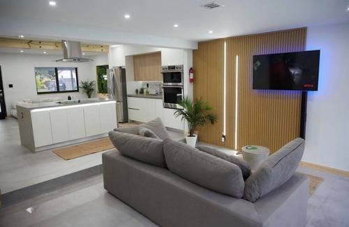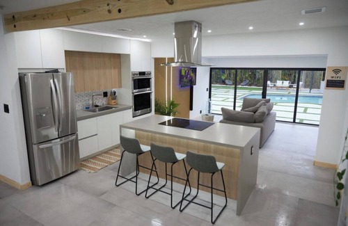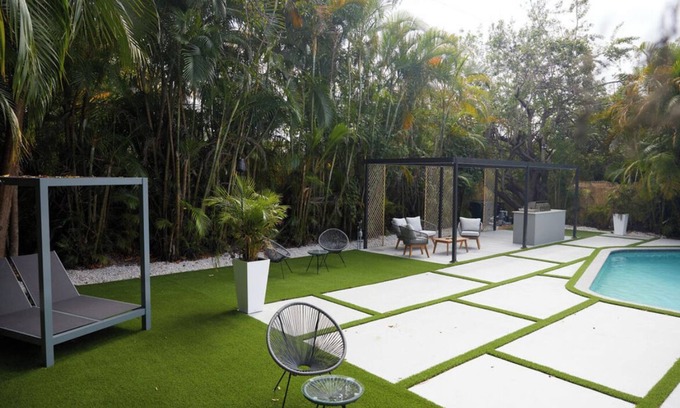 Tulum house Miami was designed and inspired by TULUM Mexico with its natural palm trees that provides a private atmosphere shade to the large backyard with large saltwater heated pool, outside kitchen grill and entertainment area, tropical fruit trees. Inside you will be at awe to experience the sleek design of the natural wood textures with modern fixers and latest appliance, freezing cold air conditioning or open windows and large doors to let in that ocean breeze which is Less than 5 min drive away. Quiet neighborhood nice neighbors great for family getaway or just a relaxing stay and entertain some friend. This place will not disappoint
