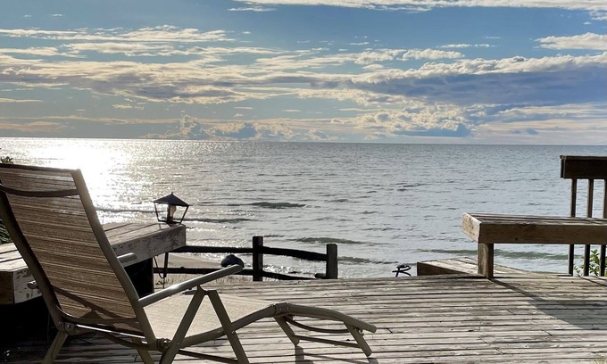 6954 Morris Lane is located on the shore of Lake Michigan 18 miles north of Harbor Springs. It is .08 miles south of Cross Village just off scenic M-119's Tunnel of Trees Lakeshore Drive ( take right on Morris Lane at fork below hill). Ideal for naturalists, cyclists, families, couples, or you and a few friends. Great deck with access to beach; take a side trip or play golf nearby. Go kayaking or canoeing, then kick back while watching the amazing sunsets over the Lake. If it rains, sit out on the covered porch or light a fire in the fireplace and catch up on your reading, card playing, or get the others to join in board game or satellite TV, and WiFi.