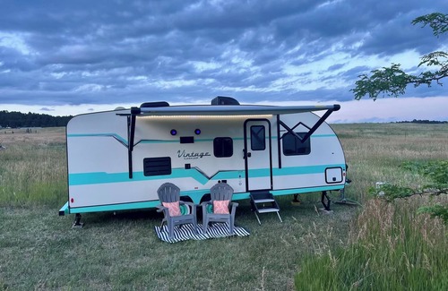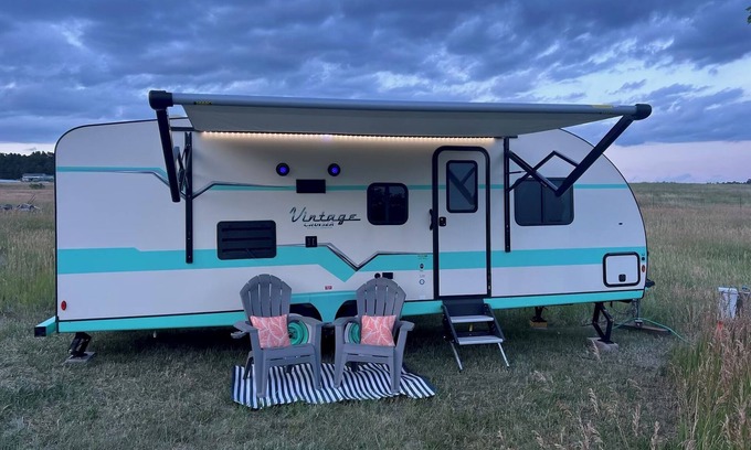 Looking for a stay that's anything but ordinary? Meet the Turquoise Tilly Camper - your retro-chic getaway on Thunder Ridge Ranch in Peyton, Colorado! This bright and cozy camper is bursting with charm and good vibes. Whether you're sipping hot coffee on a cool morning or kicking back with mountain air and gorgeous views, Tilly brings the fun and comfort you didn't know you needed.