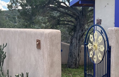 Quaint casita with incredible views of the Sandia! Lovely 1 bedroom with queen bed, full bath, full size washer and dryer, full kitchen, large living room with queen sofa bed and additional couches. Wood burning stove. Private courtyard and fenced for pets and peeps.