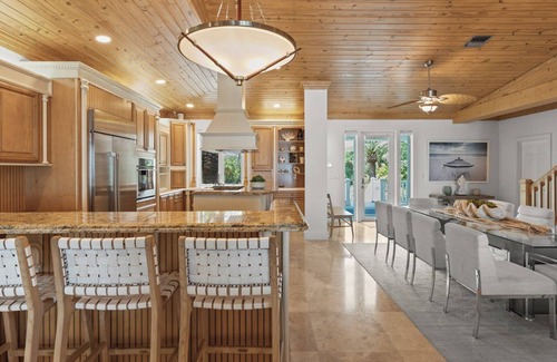 This expansive 5-bedroom, 5-bath estate home offers over 5,000 square feet of beautifully appointed living space, with cathedral ceilings, a vast great room, and a layout that's ideal for entertaining and relaxing in style. Whether you're traveling with family, friends, or celebrating a special occasion, Turtle Crawl delivers a once-in-a-lifetime vacation experience. Luxury Features & AmenitiesReal sandy beach with protected turtle nesting areas (outdoor lights off at 10 PM to preserve nesting activity)Massive 40-foot resort-style pool surrounded by swaying palms and stunning ocean viewsExpansive covered veranda for oceanfront dining, morning coffee, or evening cocktailsPrivate dock with a 4-ft draft, perfect for fishing or launching your boatKayaks and Paddleboards included. Spacious concrete construction with privacy and safety in mindFive luxurious bedrooms, all with king-size beds and big-screen TVsFour en suite bathrooms, plus a fifth full bath to accommodate the 5th bedroom. 4 of the bedrooms are on the main floor.Third-floor entertainment room with access to a widow's walk for panoramic ocean and island viewsFast, direct boating access to both the Atlantic and Gulf of MexicoTons of natural light and views from nearly every roomWhether you're soaking up the sun by the pool, fishing from the dock, or watching stars emerge over the water, every moment at Turtle Crawl feels like a dream come true. Explore Long Key & the Middle KeysWhile the home is designed for you to never want to leave, there's plenty to explore nearby! Located midway between Islamorada and Marathon, Long Key is the perfect launchpad for adventure. Nearby Restaurants (within a short drive):Habanos on the Creek Authentic Cuban cuisine and fresh seafood in a laid-back waterfront setting. Lobster Crawl Bar & Grill Located just up the road with great ocean views, cocktails, and island fare. Lazy Days (Islamorada) One of the top-rated spots in the Keys, offering oceanfront dining and bring-your-catch options. Island Fish Company (Marathon) A classic Keys tiki restaurant with a full bar and fresh daily catches. Morada Bay Beach Caf (Islamorada) Stunning dining on the beach with an upscale island vibe and signature cocktails. Things to Do Nearby:Long Key State Park Kayak through mangrove trails, hike coastal hammocks, or simply enjoy a serene picnic on the beach. Fishing Charters Book a guided trip for world-class tarpon fishing just minutes away. Diving & Snorkeling Explore vibrant coral reefs at Coffins Patch or Alligator Reef, both short boat rides away. Paddleboarding & Kayaking Calm waters make this the perfect area for exploring by paddle. The Dolphin Research Center (Grassy Key) A fantastic, family-friendly experience for up-close dolphin interactions. The Turtle Hospital (Marathon) Learn about sea turtle rescue and rehabilitation at this beloved local nonprofit. Bahia Honda State Park Just a short drive south, offering some of the best beaches and snorkeling in the Keys. After a day of exploring, return to Turtle Crawl, where the pool awaits, the ocean breeze calls, and the stars shine bright over the Atlantic. Let us help you create your dream vacation in the Florida Keys! We're happy to accommodate most special requests and are committed to making your stay at Turtle Crawl unforgettable. Check-in is 4 pm on day of arrivalCheck out is 10 am on the day of departureVacation Rentals of the Florida Keys provides a complimentary starter kit of soap, toilet paper, paper towels, dishwasher detergent, and laundry detergent. Guests will need to provide ongoing supplies for their stay. Vacation Rentals of the Florida keys (Vrotfk) has Terms and Conditions of use for this property and all the properties we manage. As a party to this transaction you and your partyunderstand that renting this property you expressly agree to the Terms and Conditions of Vacation Rentals of the Florida Keys (Vrotfk). Once a deposit is received by Vrotfk, or through any other platform you choose to book the property, that act will acknowledge and accept these Terms and Conditions. Terms and Conditions are attached to every reservation confirmation. Terms and Conditions will be sent via an e-sign document that is required to be signed after booking.