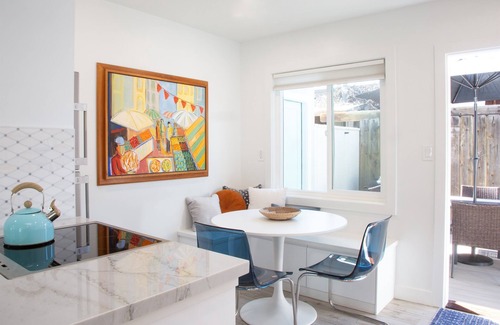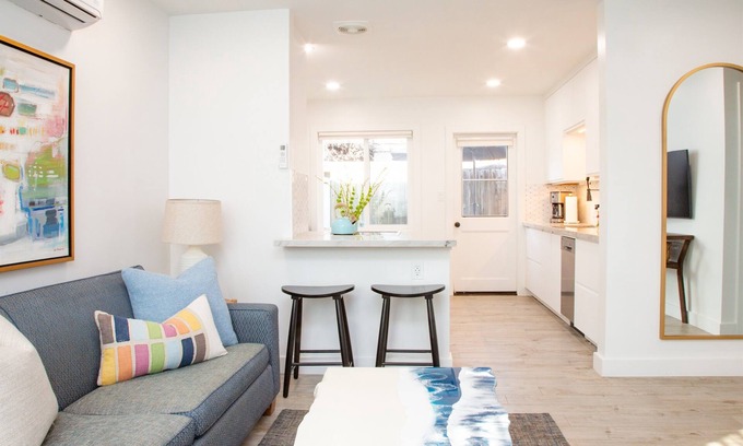 Grab your wine glass or your koozie and your beach cooler: it's all here waiting for you. Then stroll out this charming 1950's beach bungalow--one of a charming duplex duo--and you're at the beach. Some say it's a two minute walk, or with little kids you may clock in at four minutes. But it's an easy flat stroll with a crosswalk that flashes and California drivers who attentively halt when you even think about crossing the road. Enjoy Del Mar's locally famous 25th street beach, which rolls contemplative in the morning and bustles during the day. And then come back to your home away from home: our owners consistently stay here and make little tweaks and improvements, so you know it's truly livable and ready for you.
