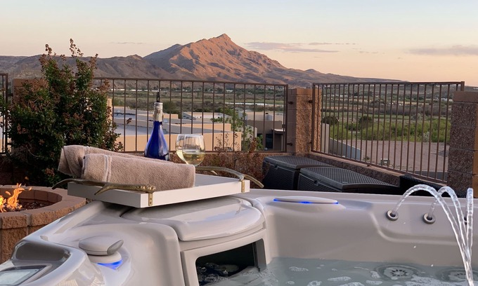 Best-rates for the Elephant Butte villa starts from $315 per night with includes Child Friendly, Parking, Fireplace/Heating, Hot Tub, Internet, Kitchen, Laundry, View, Sports/Activities, Barbecue/Outdoor Cooking, Air Conditioner, Ocean View, Accessibility, Guest Services, Pet Friendly, TV, Balcony/Terrace, Security/Safety, Bedding/Linens, Wellness Facilities, Entertainment with all other amenities. Perfect for Weddings is committed to ensuring every guest experiences a comfortable and extraordinary stay, whether planning a romantic getaway, a honeymoon, a pet-friendly stay, or celebrating with the entire wedding party.