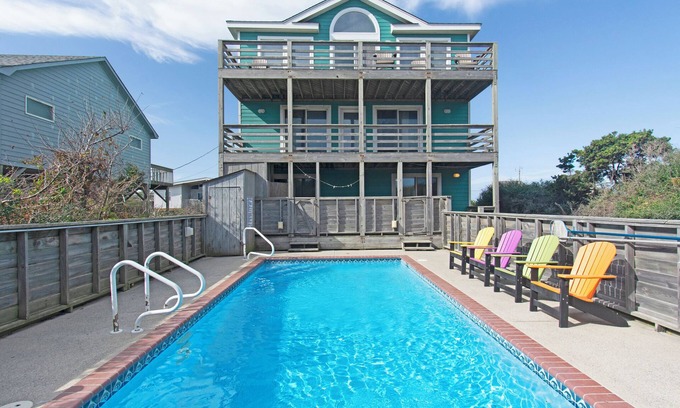 Turtles Roost: Oceanfront, Pool, Spa, Game room is located in South Nags Head. Turtles Roost: Oceanfront, Pool, Spa, Game room provides accommodation, featuring Pool, Fireplace/Heating, Child Friendly, among other amenities. This House features Pool, Fireplace/Heating, Child Friendly, to make your stay a comfortable one.