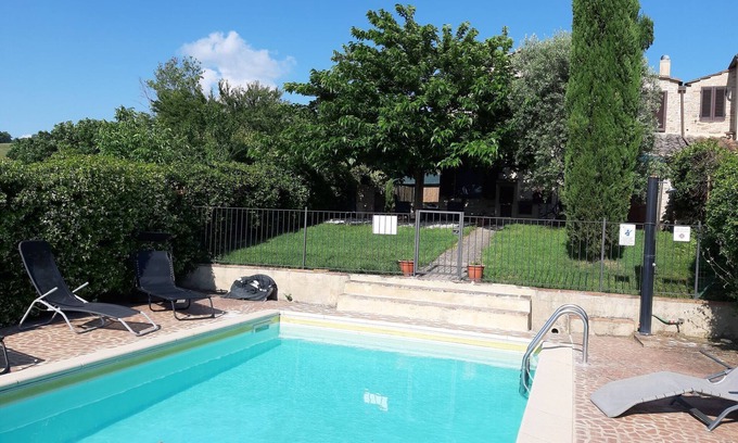 Nestled in the serene countryside near Lake Chiusi, this charming farmhouse is perfect for a peaceful family holiday or a relaxing getaway with friends. Surrounded by nature, the property features a private garden, a lovely swimming pool (6 x 4 m, open May–October), sun loungers, and a veranda ideal for outdoor meals. The setting offers tranquility and scenic beauty, while still being close to cultural highlights and the picturesque Tuscan landscape.