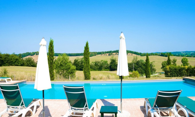 Tuscan village in SIena farmhouse surrounded by garden,pool and panoramic view is located in Torre A Castello. Tuscan village in SIena farmhouse surrounded by garden,pool and panoramic view provides accommodation, featuring Kitchen, Laundry, Parking, among other amenities. This House features Kitchen, Laundry, Parking, to make your stay a comfortable one.