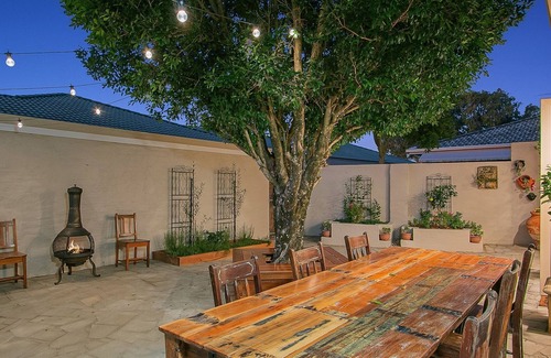 Evenings are well spent in the fenced courtyard area sitting under the pretty festoon lights and on those cooler nights you can warm up in front of the firepit.