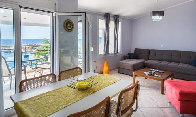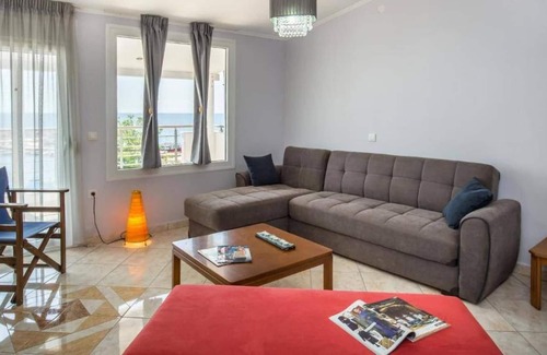 The apartment is on the beach of Potos. It is in the 2nd floor of the building this is why the guests can enjoy the amazing sea view.