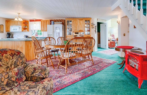 Your stay at Twilight Cove comes with an array of amenities designed to enhance your wedding experience. The open floor plan features a fully stocked kitchen, perfect for preparing delicious meals, while a formal dining table invites heartfelt toasts and shared laughter. The inviting great room, adorned with stunning lake views and cozy seating, leads into a sunroom that’s ideal for sipping morning coffee or enjoying evening drinks. Outside, the expansive lawn offers plenty of space for yard games or simply lounging under the sky, along with 50 feet of private lakefront access complete with a large dock for all your recreational activities.