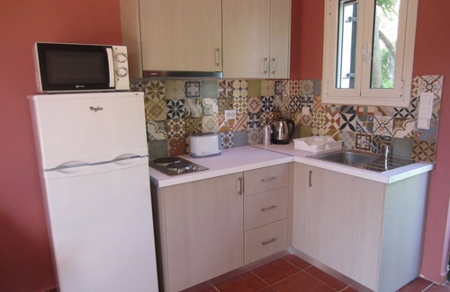The two Maisonettes can comfortably accommodate up to 8 persons. The houses are 500 ft2 each, have a private entrance and are identical in terms of space; however each one is has its own unique character. Elegant Maisonette RUBY has a modern look and features the typical Zakynthian red color, whereas Elegant Maisonette EMERALD has a romantic aura and features the environmental green color.