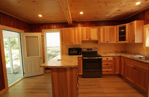 Cool delicious well water from our private well offers a no cost alternative to bottled water. The cottage features quiet new ceiling fans, WIFI Internet, HI-DEF flat screen TV with dvd and premium cable service. A huge fully screened porch overlooks the beautiful golden sunsets across the cove. You can enjoy delicious grilled meals from the new in 2019 Weber 3 burner gas grill in the yard. The 32' long 6' wide dock and landing with a fantastic 5' wide stairway with handrail into the water facilitates enjoying the water for people with limited mobility issues. The use of two single kayaks for our guests at no additional cost provides plenty of ways to enjoy the water! The kayaks are stable and perfect for first time paddlers. Take lunch and picnic on the pond! Several islands are just a short paddle away. A mere 10 minute paddle from your dock "darkest africa" as I used to call it, awaits your exploration . While the name may be testament to the childhood exaggerations of a youthful perspective, it is still a picturesque little stream where you may catch a glimpse of turtles sunning themselves above the lily pads or a blue heron fishing the shallow water if you are lucky.