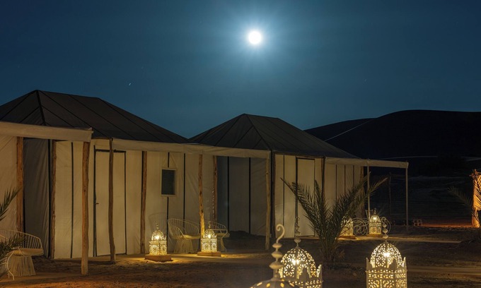 A recently renovated luxury tent in Merzouga, Merzouga Nomads Luxury Camp offers outdoor fireplace, private parking and sports facilities. The property features quiet street views. Guests can make use of the picnic area or the terrace, or enjoy views of the mountain and garden.