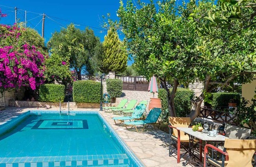 Both bedrooms and living area offer air-conditioning and balconies with mountain views. Outside the 40 sqm swimming pool is surrounded by a stone terrace and a beautiful, lush green garden, with sun chairs and umbrellas provided. A stone barbecue and outdoor shower is also provided.