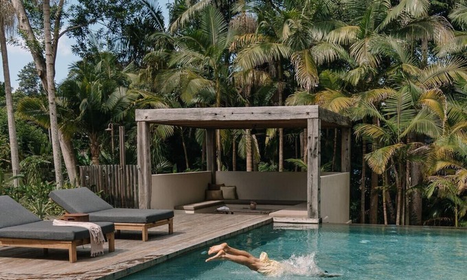 In the heart of Clunes village, this pared-back, private resort inspired property offers a tranquil 4 bedroom, 2 bathroom holiday home set on 2 acres of tropical gardens with lush rainforest. Designed with raw and organic textures