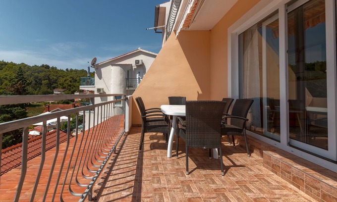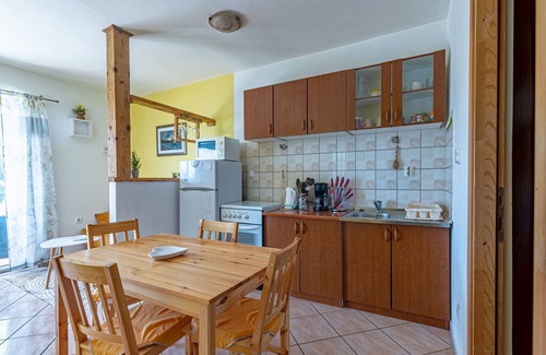 Apartment can accommodate 4 guests. Beds are situated in 2 sleeping rooms, within 38m2. Guests can use a private terrace to enjoy the warm summer evenings. The apartment offers the sea view. Food can be prepared using barbecue which is shared with other guests too. This accommodation unit welcomes pets at no additional costs.