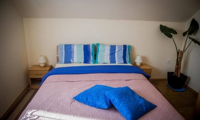 Apartment can accommodate 4 guests. Beds are situated in 2 sleeping rooms, within 43m2. Food can be prepared using barbecue which is shared with other guests too. There is no balcony or terrace in the reserved accommodation unit.