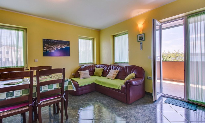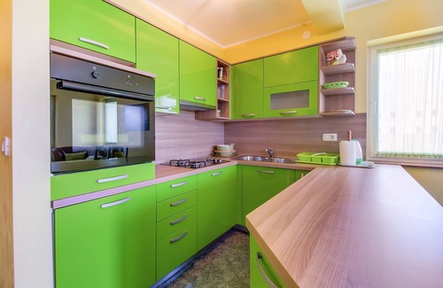 Apartment can accommodate 6 guests. Beds are situated in 2 sleeping rooms, but also in the living room, within 53m2. Guests can use a private balcony to enjoy the warm summer evenings. The apartment offers the sea view.