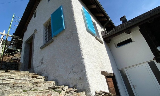 White walls and shutters as blue as the sky: SANTORINI will surprise you from its facade, a mixture of the colors of Greece and the typical houses of the Leventina Valley!