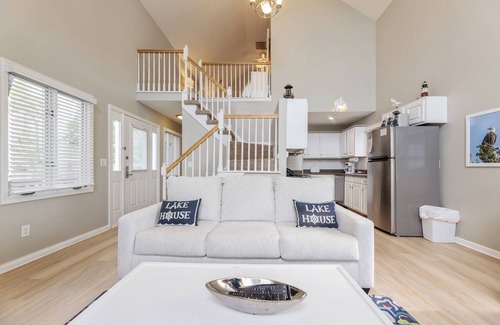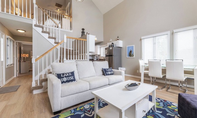 The Eagle’s Nest is the ideal condo retreat, whether you’re planning a short escape or a longer stay. The spacious deck provides breathtaking views of the lake and surrounding woods, making it the perfect spot to relax or entertain. This two-bedroom condo comfortably sleeps six, featuring a king-sized bed and private full bath in the loft, a queen-sized bed with an attached full bath in the downstairs bedroom, and a queen sleeper sofa in the family room. The fully equipped kitchen has everything you need for cooking, along with an outdoor grill for barbecues. When it’s time to unwind, each room offers a TV with internet and cable, while the family room’s cozy fireplace sets the mood for chilly evenings. Please note: this condo is non-smoking and not pet-friendly.