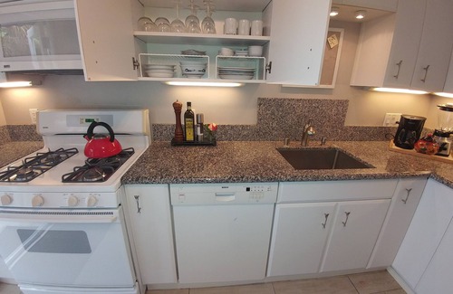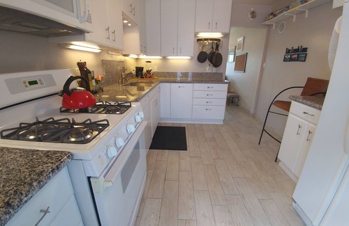 Note: We professionally clean each cottage between guests so your cottage is super-clean. All linens, hanging sheers in the bedrooms, duvet covers, mattress pads and pillow covers are professionally cleaned. Remotes and wall switches are sanitized, tile floors cleaned, kitchen and bathroom sanitized, every detail is covered. We provide in your starter kit TP and cleaning supplies for your use. We provide steaming cable, water and gardener, but you pay gas and electricity (SDGE). Quiet and respectful guests only.